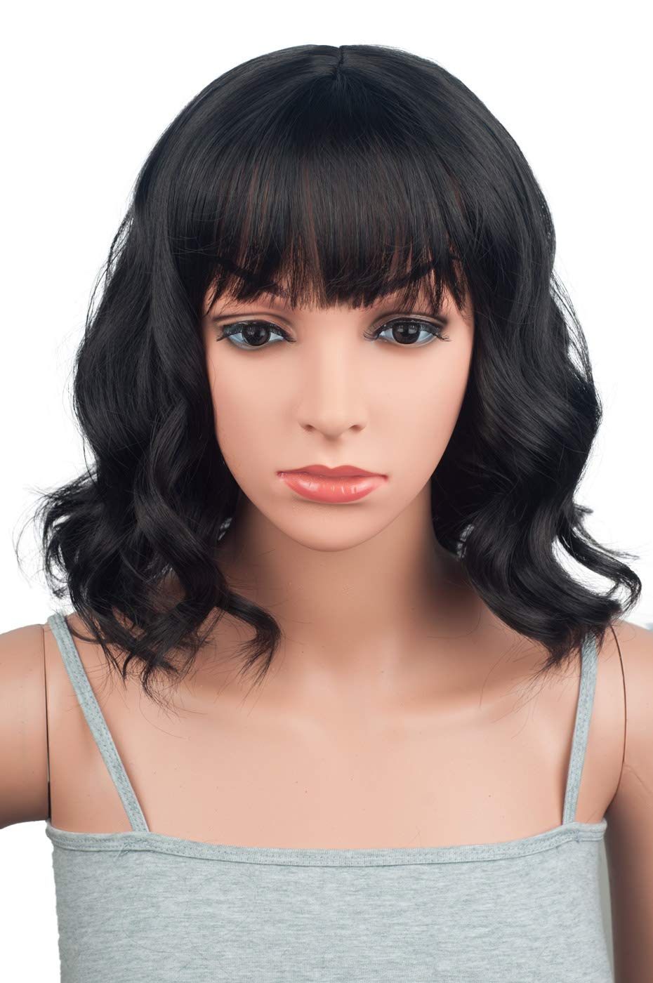 Details About Synthetic Wigs For Women Short Black Wavy Hair With Bangs Natural Women S Wig