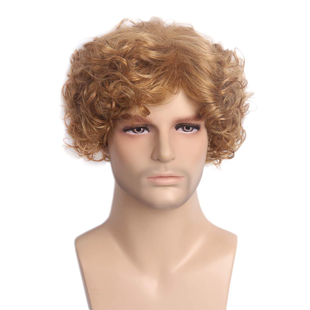 Stfantasy Long Curly Golden Brown Hair Wigs Men Party Wigs For Cosplay Costume Halloween